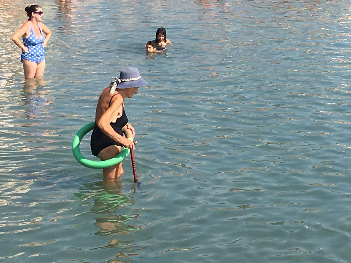 Si vede che è un ritaglio di una foto fatta forse col cellulare, ma sai che c'è? Chissenefrega! E' composta bene e ha un gran bel significato, perfettamente in tema. La signora non ha proprio alcuna intenzione di cedere alle angherie del tempo e resiste, indomita, con la sua ciambella verde, dirigendosi (forse non proprio speditamente, ma vabbè ) verso il suo tanto desiderato bagno, aiutandosi perfino lì col suo ormai fidato compagno, il bastone. Complimenti, altra street verace! |