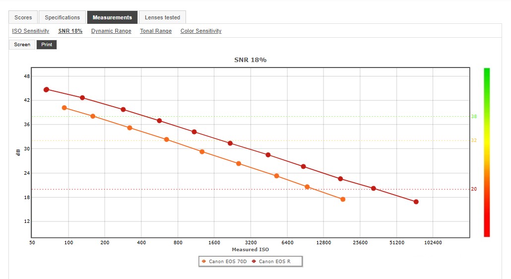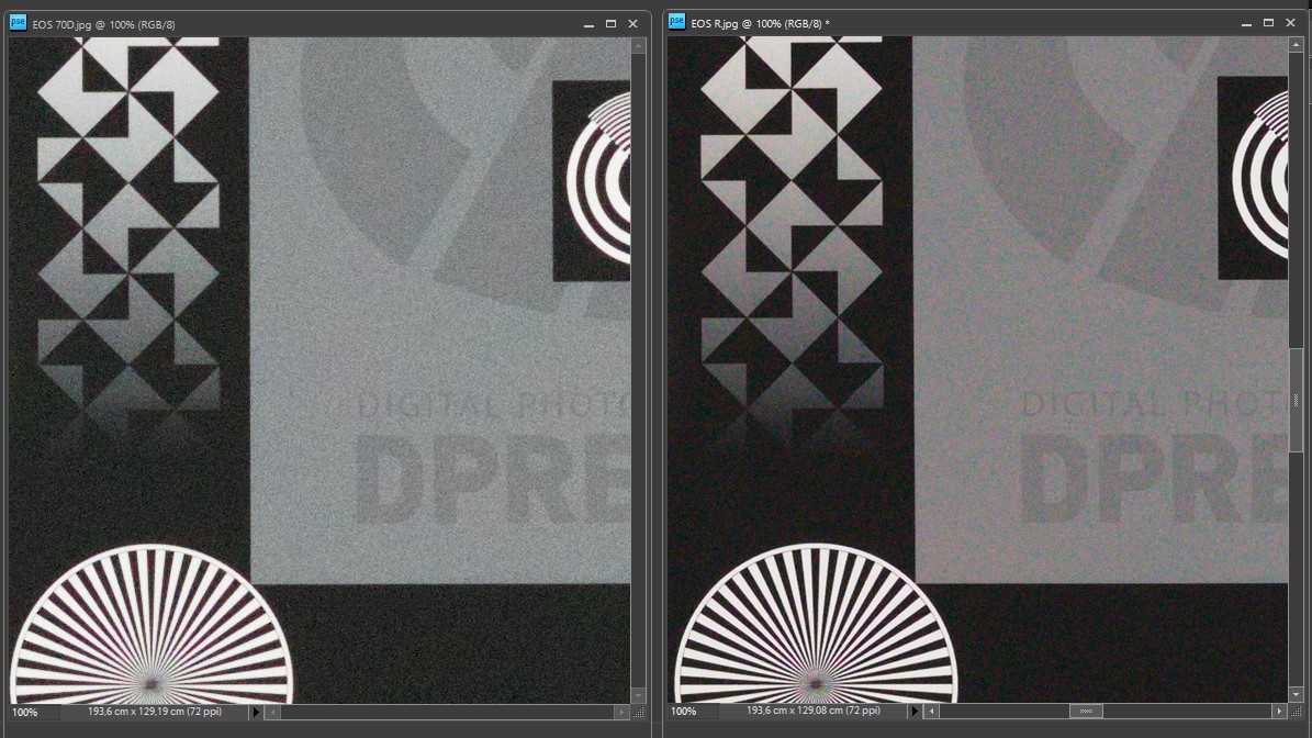 Ma soprattutto (dopo tutti questi discorsi) non dimentichiamoci che il nostro amico viene da una situazione di questo genere (EOS 70D vs. EOS R) e che quindi ANCHE con una EOS R ne avrebbe tutto da guadagnare. (Quasi due stop di pulizia in più)
