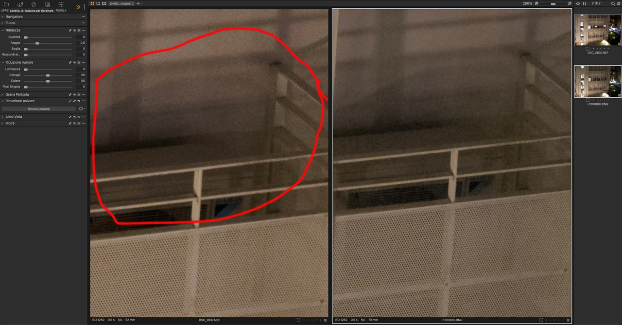 “ avevo fatto una premessa, dopo 18 anni stessi risultati, solo che nel notturno la Z7 prosegue la S2 no, intendo che con la nikon puoi farla anche a mano libera, grazie a stabilizzatore e possibilità di alzare gli iso „ Lomo, certo, sappiamo tutti le potenzialità delle moderne fotocamere, ma... ti aspettavi a 1250iso, anzi, a 2500iso un pareggio? Io mai nella vita, se per voi è normale, ok... però questa cosa avrei voluto provare a dirvela prima di farvi vedere i risultati, perchè col senno di poi... siamo tutti fenomeni “ non è slittamento sono proprio andati, basta guardare la striscia blu del condizionatore ... „ Hai ragione Oratrix.... però siamo entrambi vittime del bias cognitivo. Io non ho visto la banda blu del condizionatore. Ma tu non hai visto la macchia magenta sul muro della Nikon (anch'esso chiaro slittamento cromatico)