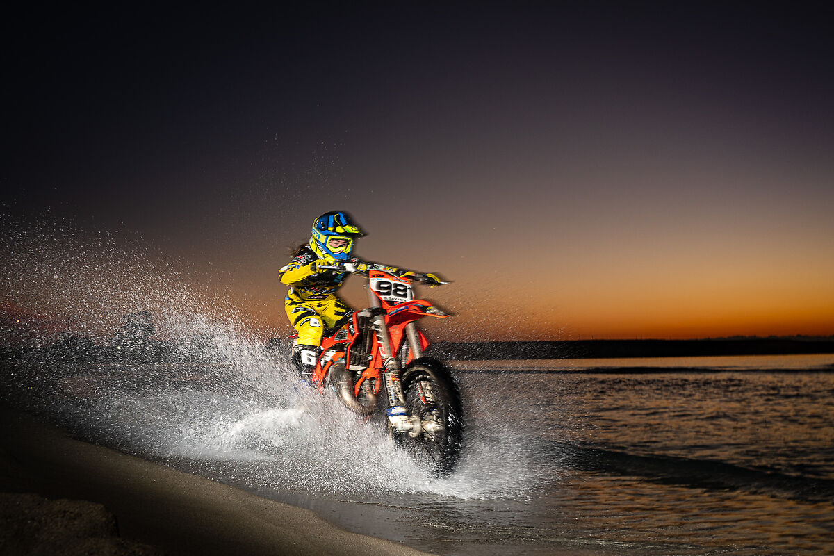 Io sono stato a Santa Barbara in Toscana dove spesso si allena Cairoli, in realta' devi vedere sul campo il tempo perche' non sai quanto veloce passeranno nel punto dove ti metti, se sei a bordo pista e' probabile o possibile che da un punto riesci a riprendere piu' situazioni interessanti, ad esempio, salto e curva. Se vuoi sperimentare con il panning, rallenta il tempo di almeno un 25 % rispetto l' esposizione corretta e sincronizza il flash sulla seconda tendina, se scatti al tramonto e sei vicino alle moto, esponi per lo sfondo e con il flash schiarisci le moto |