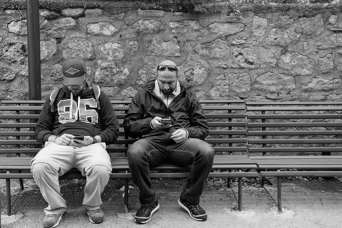 Ho riguradato questo scatto e l'ho letto come una metafora di una società spesso inquadrata in una routine dove conoscersi (e ri-conoscersi) sembra un'eccezione (che gli animali ancora conservano), per le nuove generazioni persino impossibile...tutto scorre virtuale.