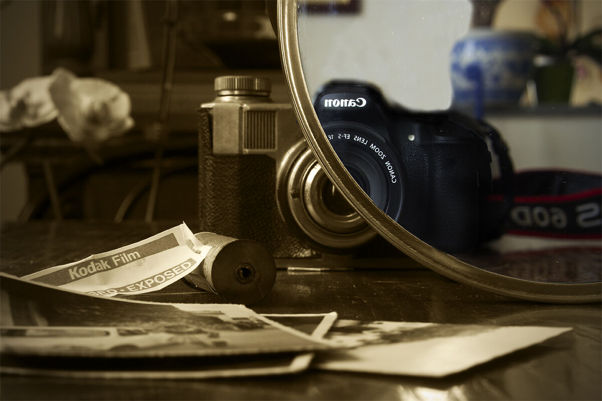 Commento: con un gioco di specchio ho voluto racchiudere in un singolo scatto anni di tecnologia fotografica.