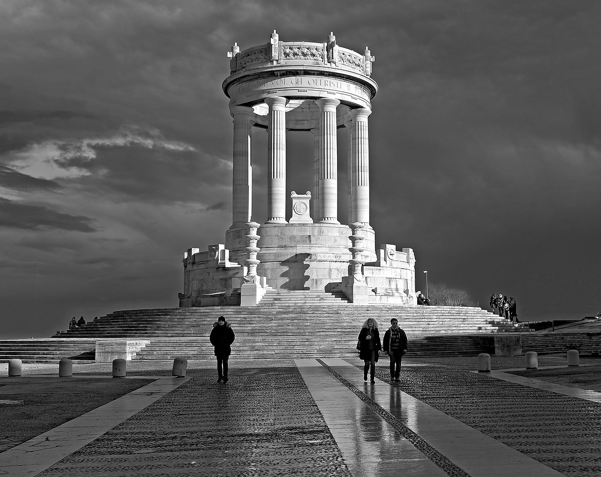 Sicuramente la post è migliorabile ma buona secondo il mio gusto personale. La prima cosa che mi è piaciuta è la luce...il fatto che solo il monumento sia illuminato è un plus che lo esalta in maniera non indifferente. il soggetto è "il monumento" nella accezione tradizionale del termine, è centrale ma l'inquadratura di lato con le linee sul terreno convergenti rendono la foto bella dinamica nella sua staticità. I turisti, pochi e ben inseriti nel frame, contestualizzano e aiutano a dare l'idea delle dimensioni del monumento, il tutto completato con una bella didascalia....a causa di una post poco appariscente non svetta sulle altre.....comunque complimenti. Seconda nomination la foto di grx55.