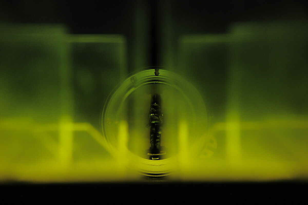 Con il laser che lo attraversa internamente