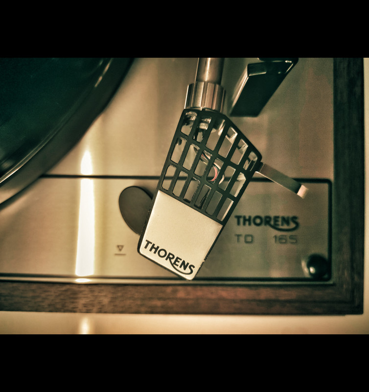Puliti, lubrificati, borotalcati e deossidati entrambi; per il Thorens ho mantenuto le tarature originali sigillate di fabbrica, che col metodo della matita il piatto era tutto sommato ancora al suo giusto posto. Dopo questo pappozzo di immagini, come suonano ? Preferisco il Technics: piu' bassi e piu' alti; il Thorens ha piu' medi ai quali sono violentemente allergico, eppoi il giapponese ha il ritorno automatico del braccio che mi fa impazzire Come estetica sono pari: un tank tedesco il primo, un mechawarrior giapponese il secondo; un po' come confrontare Leica e Nikon. E' molto carino l'antiskating con filo e contrappeso del Thorens. |