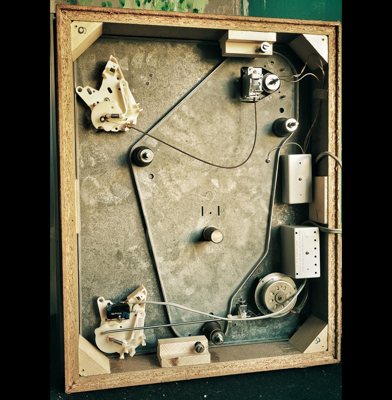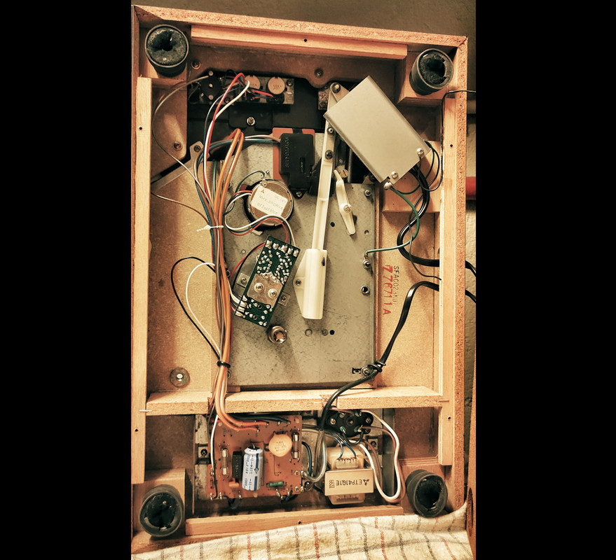 Per di sotto, con l'elettronica di controllo della velocita', alimentazione e potenziometri vari