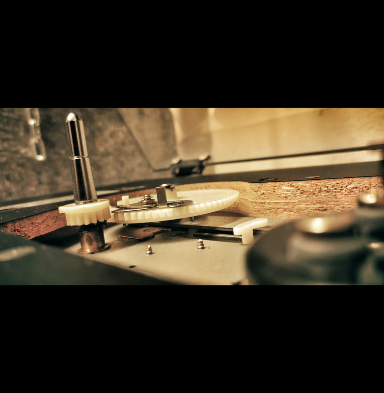 Puleggia per cambio meccanico di velocita', sopra 45 sotto 33 e cighia ancora originale appena lavata, asciugata e borotalcata, come le chiappette di un bambino; per fortuna non si vulcanizzano come quelle delle piastre a cassette...