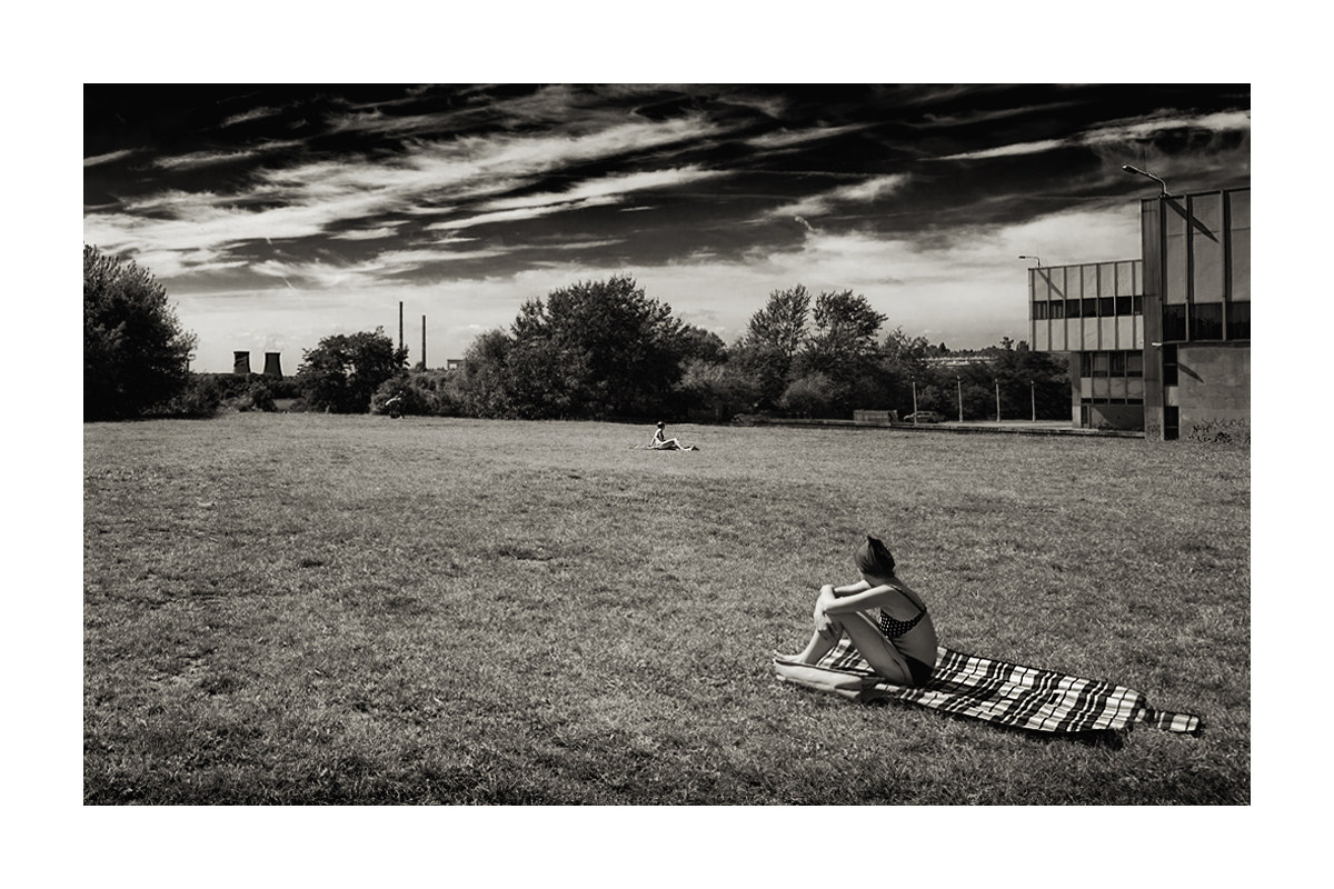 Aggiungo qui sotto il commento che a suo tempo scrissi alla foto di Francesco Merenda “ Ottimo gioco "binario": due persone, due torri di raffreddamento della centrale, due ciminiere, due lampioni. La enigmatica relazione a distanza che si instaura tra le due bagnanti sulla quale siamo portati ad interrogarci nell'osservare la foto: quale sarà la corrispondenza che le lega? Il sottile mistero sul rapporto esistente, inesistente tra le due donne riempie di interrogativi il vuoto che le separa. Metafora della incomunicabilità o del suo contrario? „ |