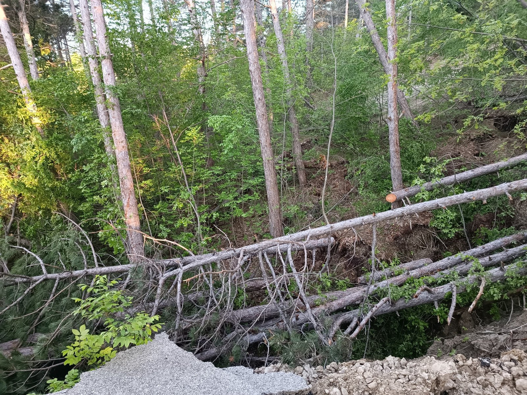 Stamattina fatto un giro in bici sull'appennino forlivese le strade non ci sono più tutti i collegamenti tra le valli sono inagibili per frana . Nell'immagine postata sopra si vedono alberi ancora in piedi peccato che erano 30 metri più in alto li c'era la strada prima |