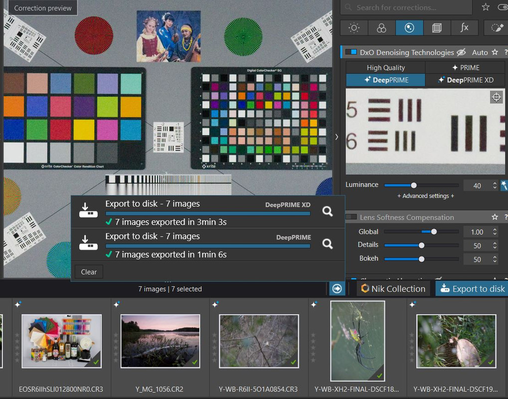 Non sono un utente PhotoLab, però sinceramente penso di aver fatto tutto come previsto. Ho selezionato tutte e 7 le immagini e per ognuna di esse ho disattivato tutti i filtri tranne il denoise dove, sempre per tutte e 7 le immagini, ho selezionato DeepPrime XD/XD2s. I file sono letti da NVMe interno e li esporto in una directory diversa sullo stesso dispositivo. Al momento dell'esecuzione del test PhotoLab era l'unica applicazione aperta. Ho eseguito il test più volte ed i risultati sono assolutamente riproducibili.
