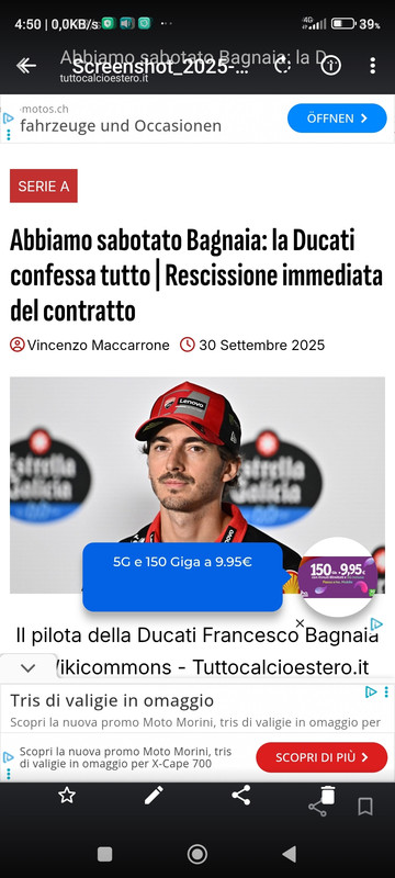 Dopo aver letto l'intervista ad Alberto Vergani.. (un emerito esperto di chirurgia.. e comunicazione.. pagato da chi paga.. ) sul cedimento nell'ultimo gran premio di Bagnaia.. : si ha la certezza..(almeno chi di gare su pista di auto e moto capisce qualcosa ..) che Pecco dovrà tapparsi le orecchie se ne vuole uscire sano sa questo tritacarne umano , messo in piedi da ducati.. per nascondere l'elefante dietro al dito.. Certo che questi non rispettano nulla e nessuno.. Mamma mia che Gentaglia... Ma nemmeno me la regalassero una ducati la guiderei.. al massimo la vendo e prendo una bella Aprilia.. che per ora mi pare la Moto più onesta del lotto.. condotta da gente onesta... Sperando che rimangano indenni da quel letamaio che sta diventando sempre di più la moto gp... Dopo l'ansia da Marquez... il cedimento post matrimonio... Ora arriva il delta della prestazione... Cioè.. visto che ha fatto terno il gran premio precedente.. dimostrando a chi diceva che era colpa sua , che si sbagliava.. Ora con questo cedimento frutto del fatto che era troppo sicuro di far bene e quindi , l'emozione lo ha fregato.. in tutto... prove.. qualifiche .. sprint.. e gara... Sto Vergani dovrebbe fare il comico... non il divulgatore di STU pi DA ggi NI..
