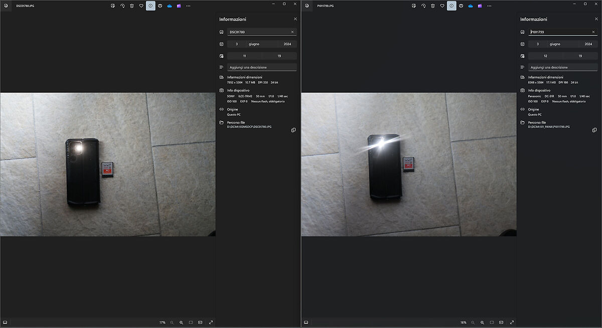 Allora questa è la prova del flare del Panasonic 50 f 1.8 su S5 e del Sony 50 f 1.8 su A7 II: