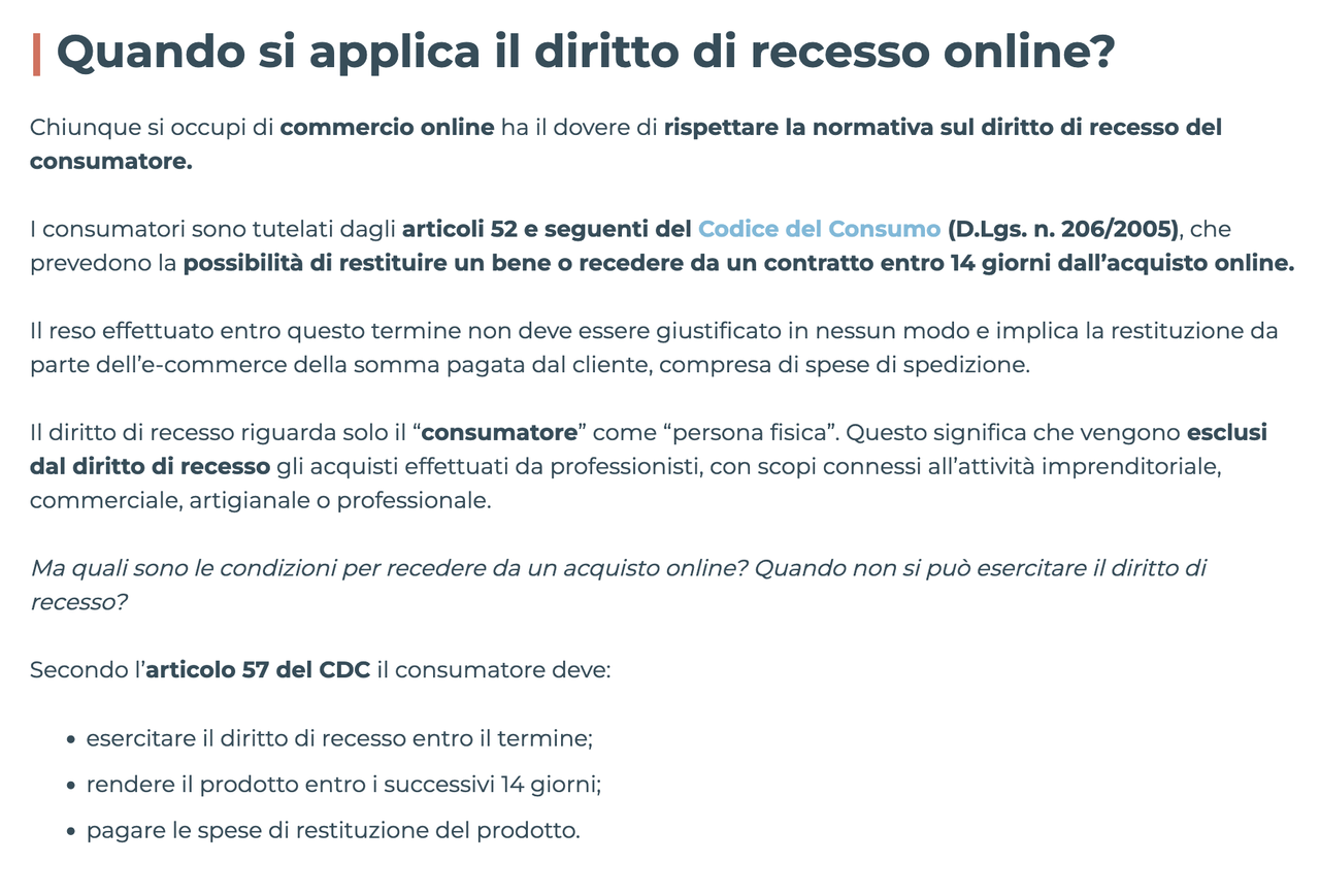 Il diritto di recesso online serve proprio perché non posso vedere un oggetto dal vivo e melo devo acquistare sperando sia come ho visto nei video, foto online.