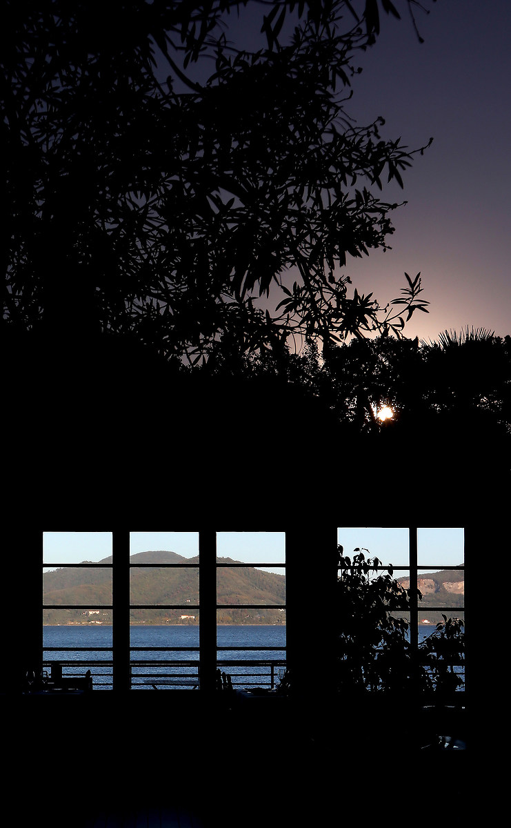 Titolo: Latitudine relativa Questa foto è stata fatta attraverso una doppia vetrata di uno chalet sul lago, la parte inferiore è quello che si vede attraverso le vetrate del locale, la parte superiore è invece il riflesso del tramonto che stava avvenendo alle mie spalle, catturato sulla prima vetrata che avevo proprio di fronte a me.