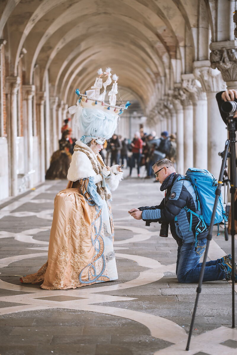 Volevo ringraziare tutti per la pazienza e tutti i complimenti. In qualche modo volevo raccontarvi come questo evento straordinario come il Carnevale a Venezia sia una vero campo di prova per ogni fotografo e per ogni genere di scatto. I primi anni al carnevale scattavo invece che ritratti veri e propri, situazioni che intorno a palazzo ducale si susseguono a ritmi notevoli. Basta cogliere l'attimo. Questo tipo di foto l'ho sempre fatto indipendentemente dall'attrezzatura (anche con il telefono per dire). E su quel genere di foto ne ho diverse anche quest'anno ma questa è molto divertente. Dopo lo scatto ci si scambia il biglietto da visita o l'account instagram. Ecco quello che capita spessissimo: la dura vita del fotografo a Venezia!