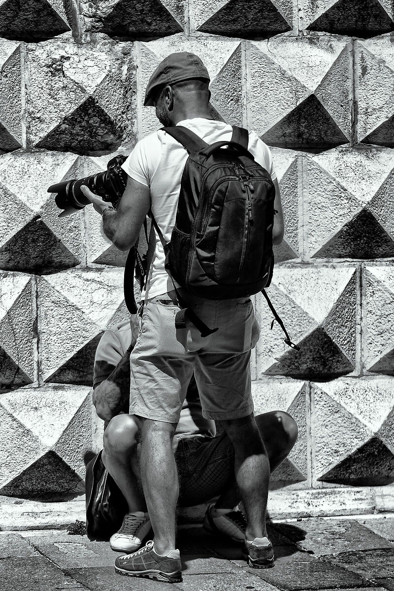 Una foto che avevo già visto sul portale e sotto la quale ero già passato a sottolinearne l'ottima fattura ed esecuzione. Anche qui un perfetto uso della prospettiva favorisce l'interazione e la miscela tra le persone e le cose. Anche qui il momento decisivo bressoniano è abbastanza evidente per la perfetta coincidenza dei tre volti che appartengono ai tre cestini. Per il resto che dire, una foto leggera, divertente, una foto di strada quasi perfetta, giusto per poter dire che la foto migliore è ancora quella che dovrò scattare. Complimenti. Un saluto a tutti. |