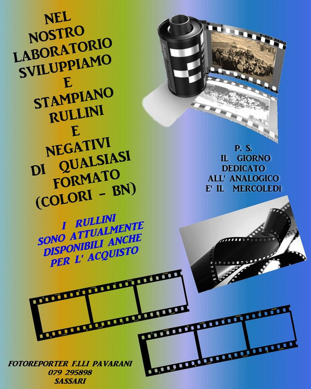 SPerando di non andare OT: ho ho quattro reflex analogiche funzionanti e vorrei cimentarmi ma non so dove sviluppare. Abito a Sassari. Voi come fate? |