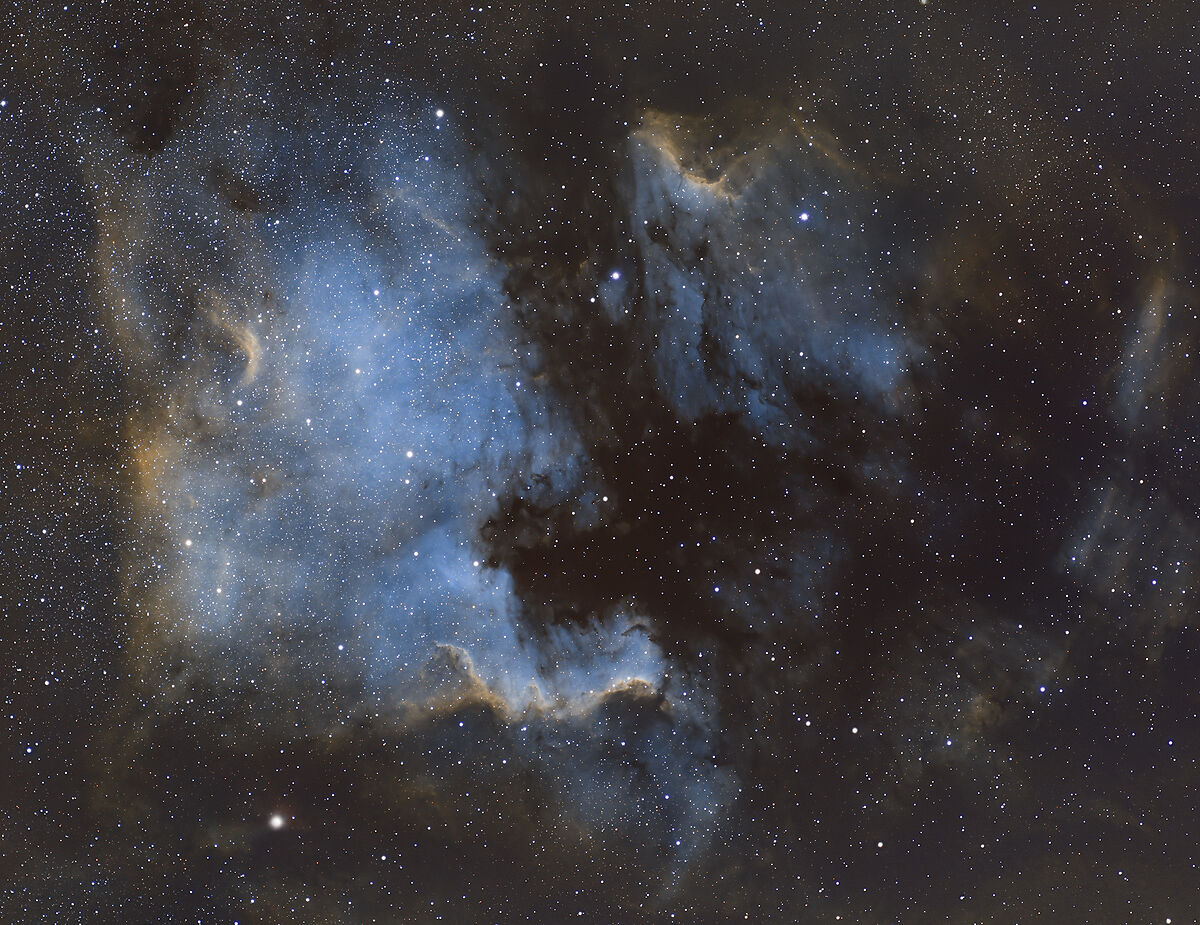 Ho una mia ripresa simile alla tua, ma eseguita con 3 filtri a banda stretta: idrogeno alfa, ossigeno trivalente e zolfo bivalente