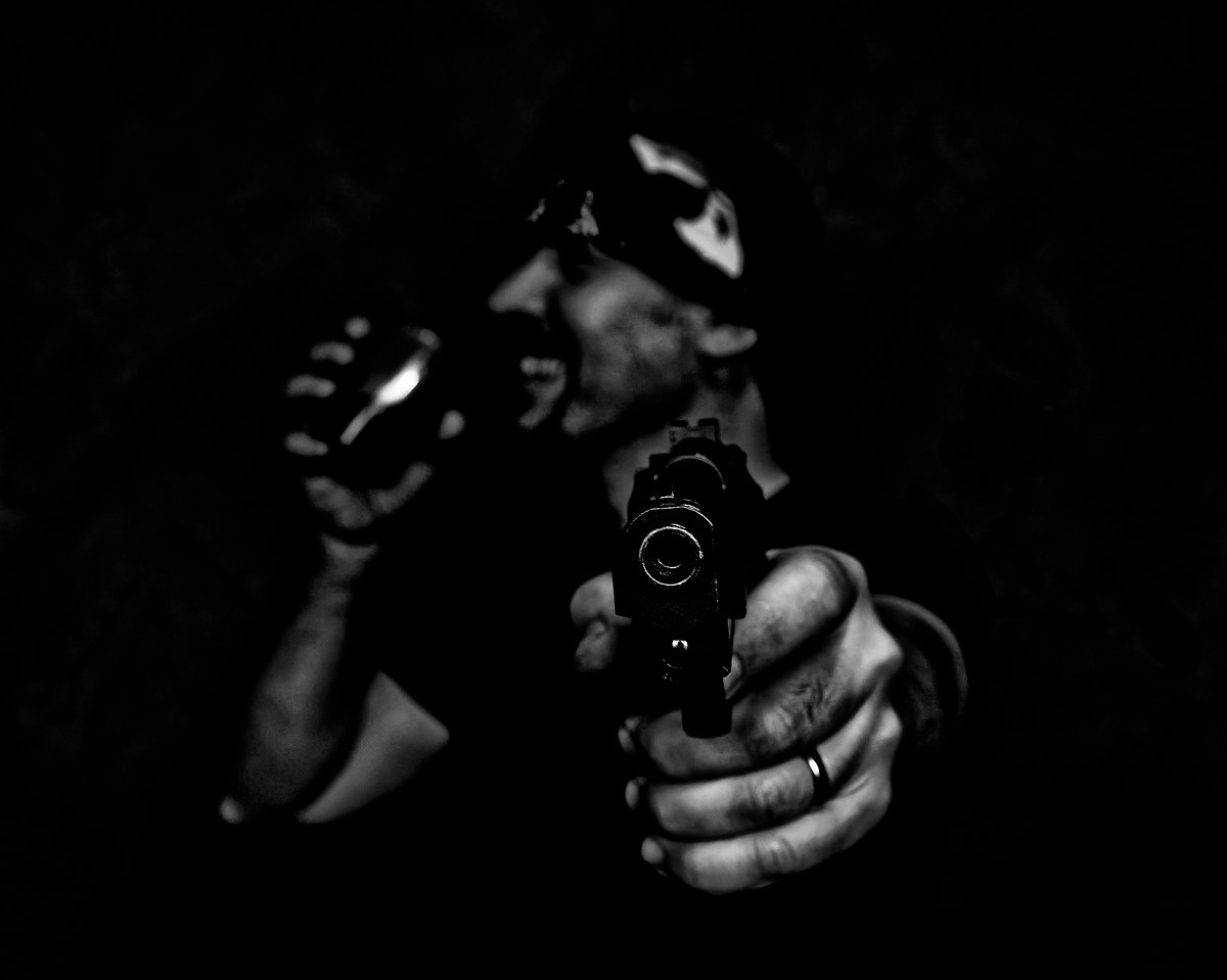 Oggi una foto di Vittorio Scatolini. Visto il soggetto ritratto, a scanso di equivoci, riporto per intero la descrizione che l'autore da del suo lavoro. Non credo ci sia altro da aggiungere se non il solito invito a visitare la galleria dei suoi scatti x farsi meglio un'idea: “ Che bella la vita Questa serie fotografica, eseguita insieme al mio amico, Alessio e Teresa, mia moglie, non vuole istigare alla Violenza, non è contro nessuno, di qualsiasi Razza o Religione, ma solo fotografie, che in qualche modo riprendo, con mia visione delle cose, produzioni di Film o serie TV, tipo: Il cacciatore, Breaking Bad, Gomorra, La Banda della Magliana, ecc........., che tutti o quasi hanno visionato e acclamato, facendoli diventare campioni di incassi e visioni. La pistola, finta, naturalmente, per chi avesse dubbi. Ringrazio Alessio, per aver esaudito un mio desiderio e contribuito ad esso. Ringrazio Teresa, mia moglie che si è prestata, in due foto, al gioco. Infine e non ultimo, ringrazio, Juza/Emanuele, per avermi dato l'opportunità di postare le foto, capendo il mio intento, solo fotografico e non istigatorio e offensivo contro nessuno. Buona visione, a chi intende passare da queste foto. Vittorio. Eseguita il 29/10/2017 Ferrara „