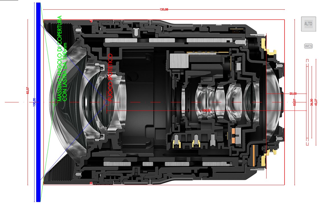 i.postimg.cc/cHSLpLFB/Immagine-2023-10-31-105000.jpg Non avendo lo schema ottico sono partito da uno spaccato recuperato in rete. Ho la dimensione della larghezza del barilotto (fonte canon) ed ho piazzato una lastra da 100x100mm abbastanza vicino. Poi ho provato a tracciare le linee più inclinate possibili che coprissero la lastra, senza intralciare il petalo incorporato. Le incognite restano molte, tipo il barilotto che ho trovato è corretto? E' esteso o no? Come viaggiano realmente i raggi estremi che colpiscono la prima lente? In ogni caso secondo mke un po di margine c'è. RIpeto è solo una prova, niente di serio. |