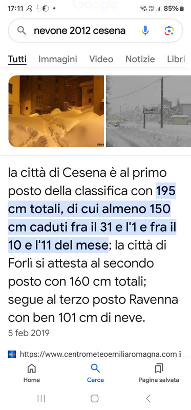 Sempre colpa del riscaldamento globale in una settimana o poco più oltre 1,5 metri di neve fresca in Romagna con punte di quasi due metri tra Cesena e Cesenatico a 10 km dal mare .