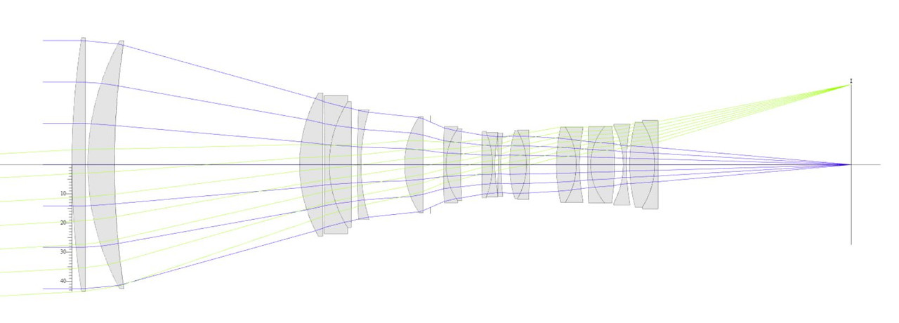 “ "allargando" l'immagine trattata dall'obiettivo „ Sul moltiplicatore non cade l'immagine già formata, l'immagine non viene allargata perchè ancora non esiste. Si tratta ancora di raggi che possono convergere perfettamente in un punto anche dopo essere passati attraverso un TC, non lo fanno perchè lo schema è generico, da ciò il calo di prestazioni. Prova a guardare lo schema ottico sopra (secondo link), cosa impedisce alle lenti del TC di far convergere perfettamente i raggi (considera per semplicità i raggi blu del centro) in un punto sul sensore se questo è progettato per quello specifico obiettivo? |