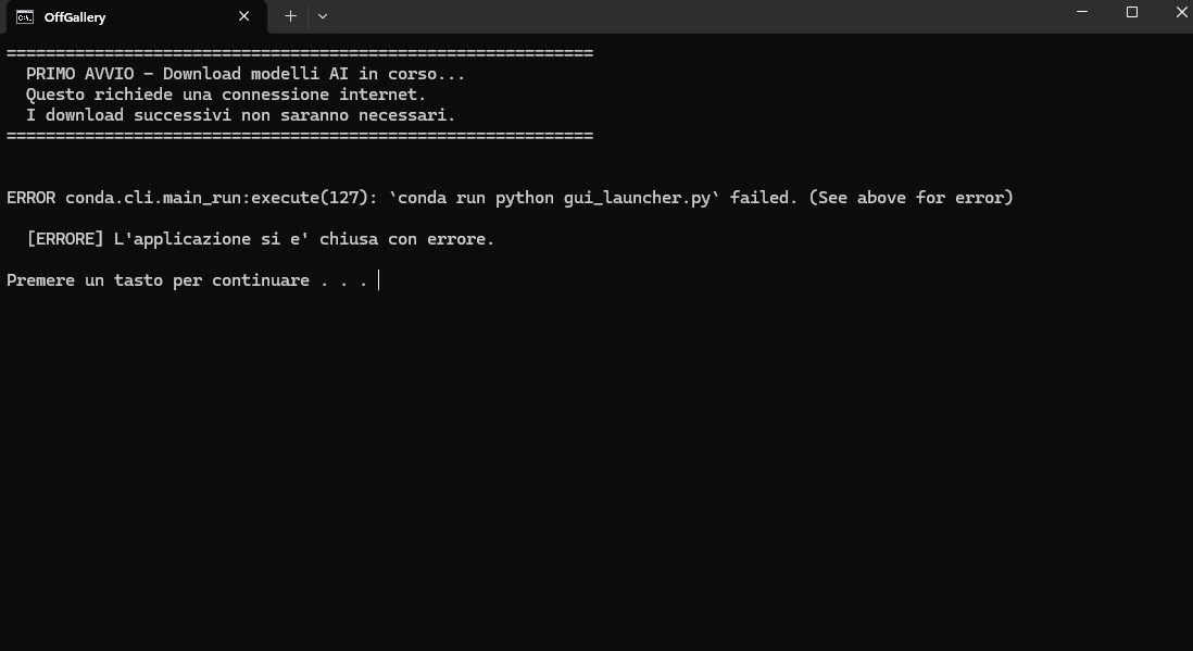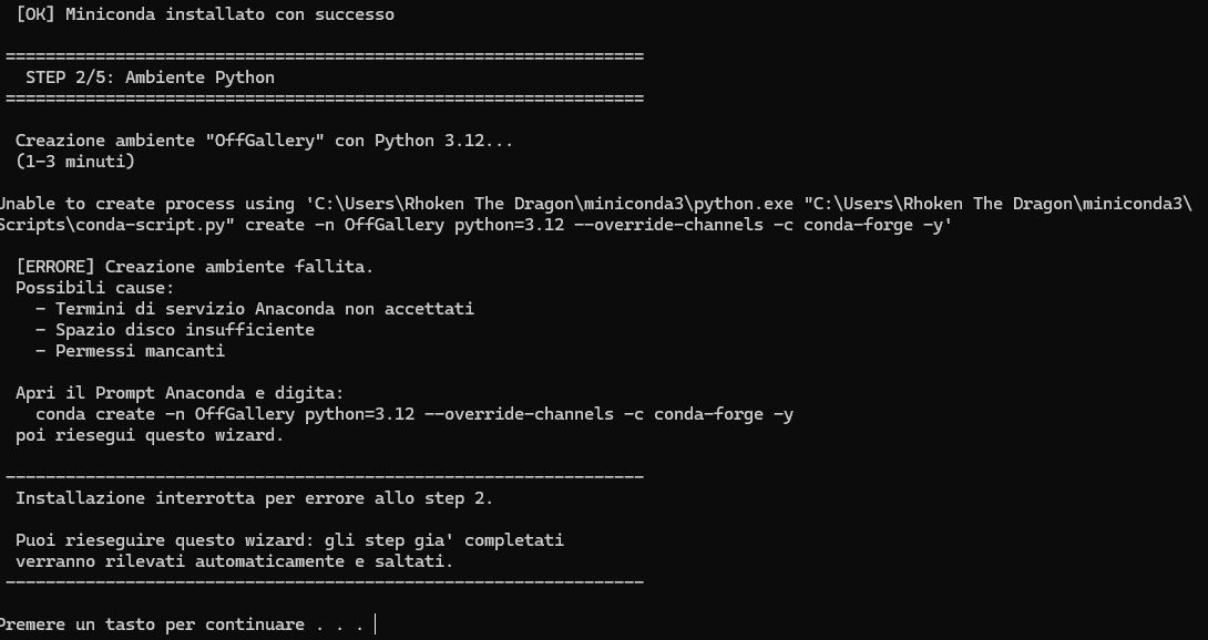 ciao. Hai intuito giusto, ma mlink non funziona perche' il processo interno di Miniconda usa il path reale non il symlink. Ho messo un fix. Adesso puoi fare i seguenti passi in sequenza: 1. Vai su GitHub alla pagina del file: github.com/HEGOM61ita/OffGallery/blob/main/installer/INSTALLA_OffGalle 2. Clicca il pulsante Raw (in alto a destra) 3. Fare tasto destro → Salva con nome e sovrascrivi INSTALLA_OffGallery.bat nella cartella installer/ 4. disinstalli miniconda da windows 5. riesegui il wizard e scegli il percorso che vuoi tipo d:\miniconda (lui propone c:\miniconda) dovrebbe trovare tutto stavolta . Grazie per la segnalazione. pero' per non intasare il forum, se hai problemi scrivimi su github, nella tab discussion. |