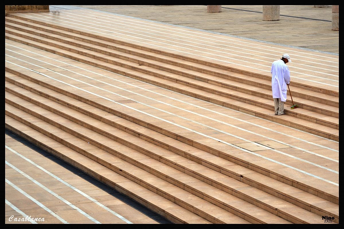 simpatica scena,e perfetta per il contest.linee geometriche ordinate ,rotte dalla presenza del soggetto.mi soffermo sull'uomo e guardo le scale,ritorno sull'uomo ed inevitabile un pensiero va al suo lavoro e al fatto che sia solo a svolgerlo..in questo caso mi sento di consigliare a Nino di tagliare il pezzo di muro in alto a sx e di clonare i piloni dalla parte opposta.la foto aquisterebbe maggior rigore compositivo senza più alcuna distrazione visiva. 5° posto Alepou-Resistenza