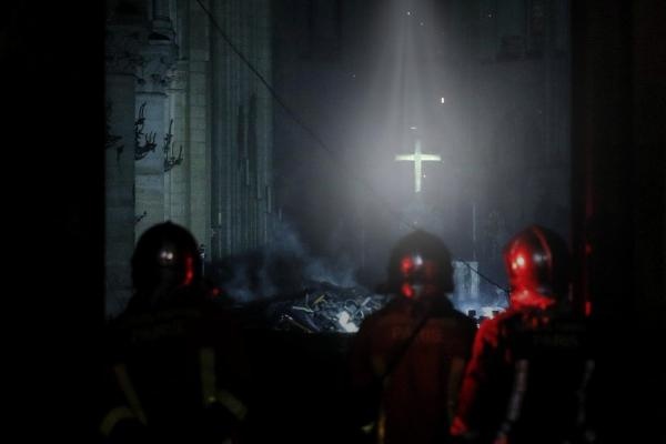 “ Foto emozionanti: „ Per carità, vieta paccottiglia. La croce illuminata dal raggio di luce che appare tra fumi e vapori, roba da Action française. L'unica novità sono i pompieri… |