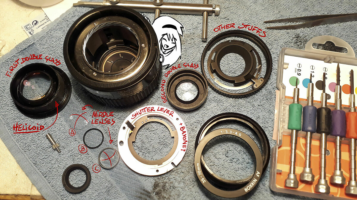 @Gsabbio. Ti ringrazio per l'apprezzamento: in realta' so affrontare solo vecchie lenti sempliciotte, ma per quelle basiche il topic apposta sulla manutenzione e' una buona idea.... Gli obiettivi moderni sono un'orgia di componenti fragili, con viti che prendono direttamente sulla plastica e che ci metti un attimo a spanare senza ritorno. Per esempio il Canon 85 1.8 e' ancora abbastanza tranquillo, almeno per arrivare a pulire le lenti interne, famose per la loro innata capacita' di accumulare polvere, ma il Tokina 11-16 e' gia' un incubo e non parliamo degli zoom recenti. Vai su lensrentals e dai un occhio al blog: quelli si che sono in gamba !!!! |