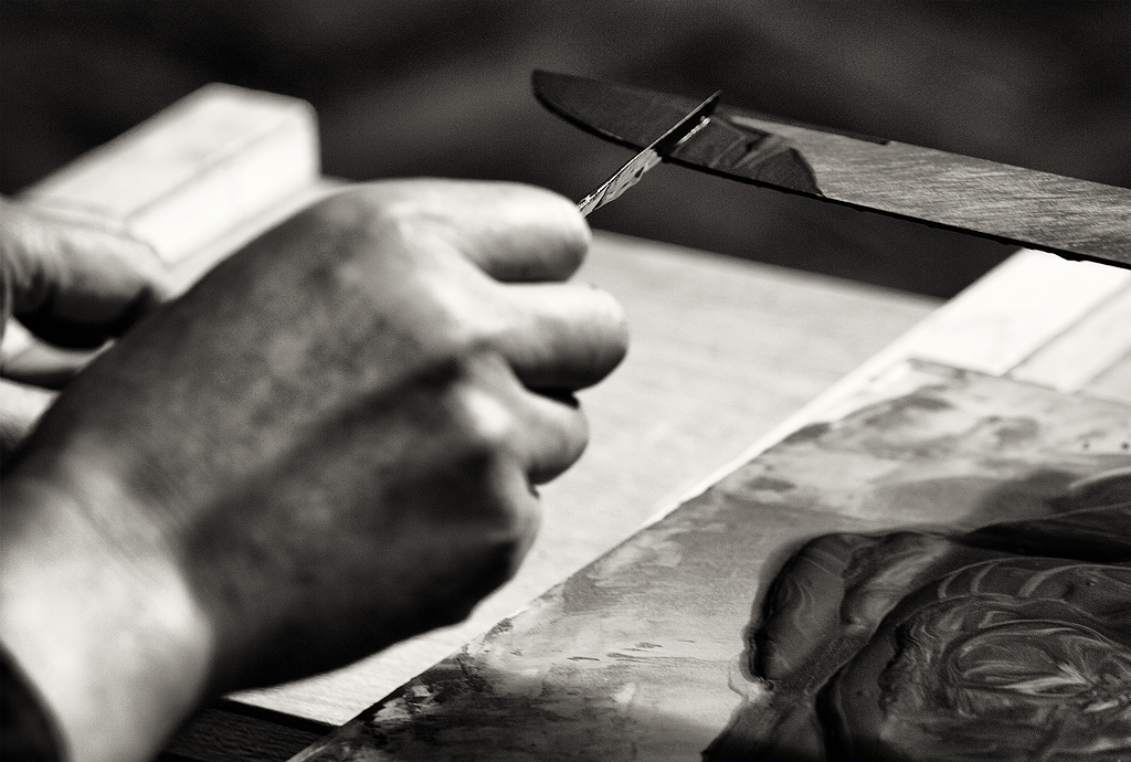“ Ciao Francesco,la foto che hai postato è davvero molto bella sia per la luce che per l'atmosfera intima che solo nel laboratorio di un artigiano si può creare e respirare...però e non me ne volere,non credi che proprio in questo caso,per avere un racconto completo,la parte che viene dedicata alle mani non dovrebbe essere molto più leggibile??perché catturare un'atmosfera/emozione è essenziale in fotografia ma forse,almeno in casi come questo,anche capire cosa sta creando l'artigiano o quantomeno intuirne lo scopo finale del suo lavoro ,credo sia altrettanto importante. „ Caro Matteo, e rispondo anche a Salt. Avete ragione al 100%. Infatti ho detto qualcosa di quella foto solo perché Salt mi ha chiesto lumi: su Juza (e in questo esempio) voleva solo avere il senso del ritratto. Questo lavoro è stato fatto per una pubblicazione, ed è costituito da un reportage relativamente ampio. Per cui la narrazione avviene non attraverso la foto singola, ma attraverso più scatti. Ne metto qui un paio di senso del tutto opposto per rendere l'idea (non oltre, che appesantiamo inutilmente) Sono un paio prese al volo da mettere qui, ma naturalmente nel lavoro ci sono quadri grossomodo di ogni ampiezza.