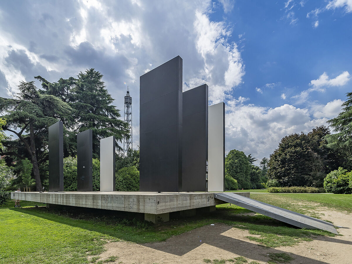 Grazie dell'apprezzamento caro collega. Confesso che non avevo pensato al monumento alle Fosse Ardeatine, a cui lavorò, insieme ad altri, Mario Fiorentino. In effetti anche lì, perlomeno da certe angolature, un blocco di cemento che "futtua" leggermente staccato dal suolo è l'elemento visivamente dominante. Chiaramente la scala è molto più grande. Penso che, nelle intenzioni di Burri, i sei monoliti su due file debbano evocare delle quinte teatrali e che abbiano una funzione analoga durante gli spettacoli. In efffetti, le viste frontali sono chiaramente quelle più importanti nelle intenzioni di Burri, dal momento che il pubblico dovrebbe disporsi di fronte ad asse, o su un lato oppure sull'altro; oppure su entrambi, a seconda di come viene allestito lo spettacolo. Qui ho trovato alcune foto di spettacoli in corso: www.milanotoday.it/cultura/riapre-teatro-continuo-burri-parco-sempione zero.eu/it/luoghi/7780-teatro-continuo-di-burri-co-parco-sempione,mila www.arte.it/notizie/milano/lunga-vita-al-teatro-continuo-11803 |