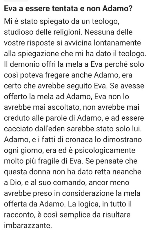 “ Non era una mela, ma un frutto del fico „ Secondo me è andata così: