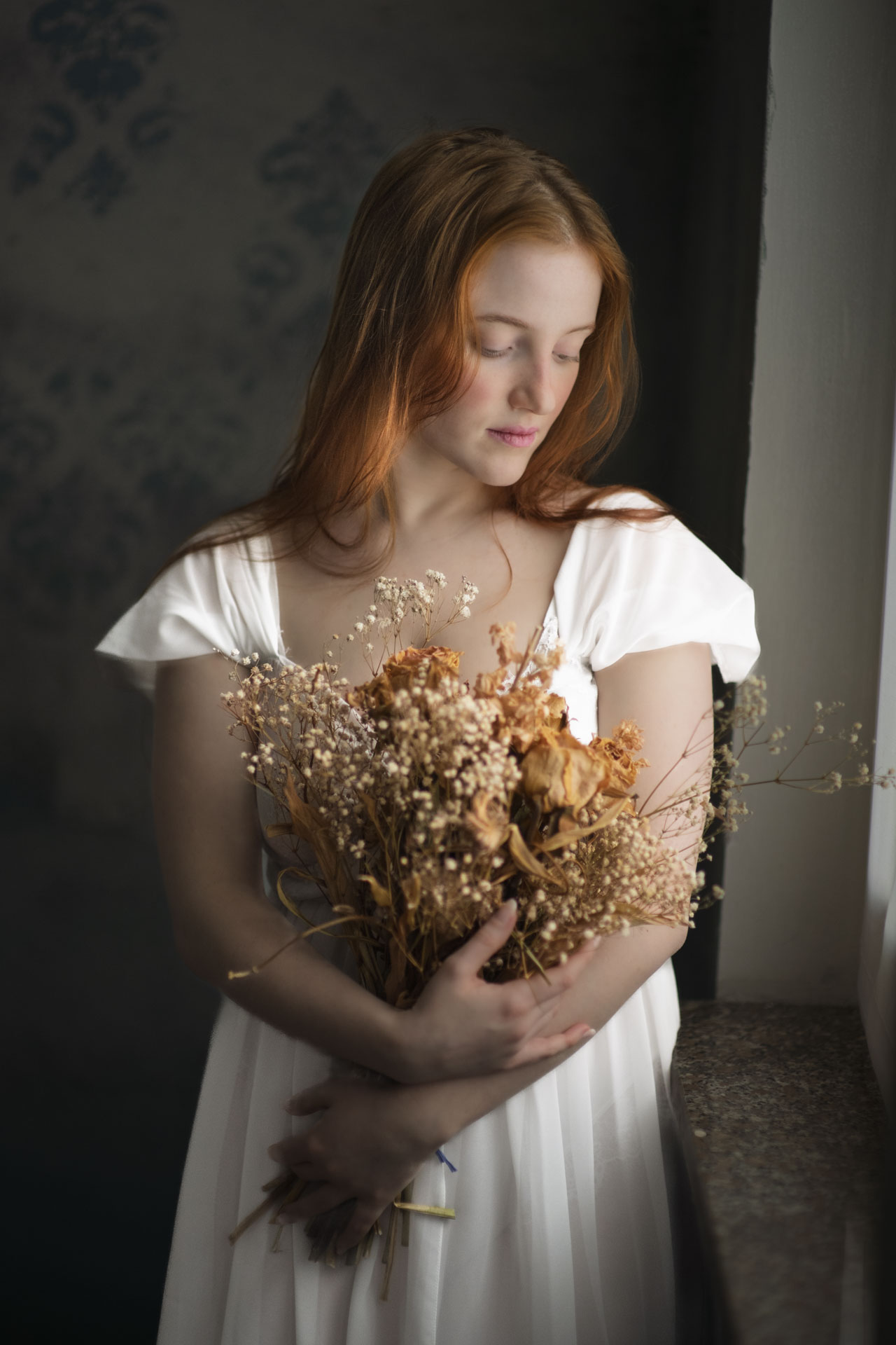 Il progetto era quello di realizzare ritratti pittorici sullo stile dei quadri antichi e la scelta della modella con capelli rossi incarnato charissimo, abito ad hoc e fisico rinascimentale erano in funzione di quello.
