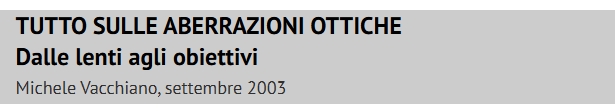 “ Posto un articolo di facile lettura, giusto per capire la complessità del progettare e produrre ottiche fotografiche, penso comunque che siano informazioni generali e abbastanza note a tutti. www.nadir.it/ob-fot/ABERRAZIONI/aberrazioni.htm „