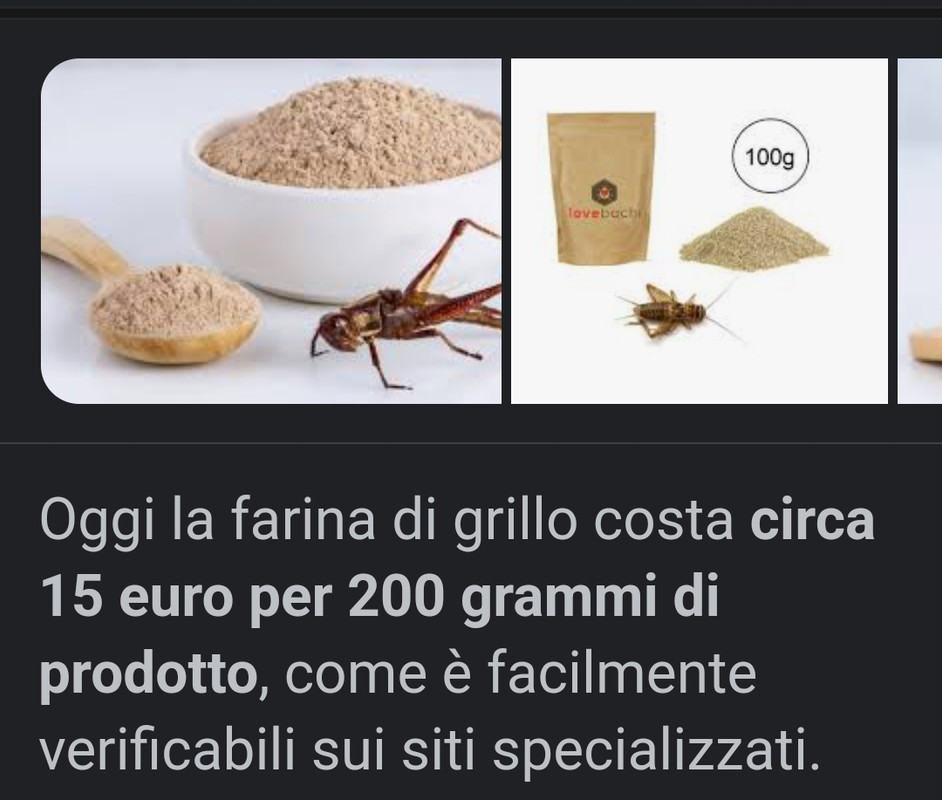 Altre fonti dicono addirittura che: “ According to the Food and Agriculture Organization, “crickets need six times less feed than cattle, four times less than sheep, and twice less than pigs and broiler chickens to produce the same amount of protein”. They also produce significantly less greenhouse gasses than animals and it takes less land to raise them. „ www.ncbi.nlm.nih.gov/pmc/articles/PMC8067469/ "richiedono sei volte meno cibo di una mucca" ...ovviamente ciascuna parte tira acqua al suo mulino quindi è difficile capire chi dica la verità ;-) |