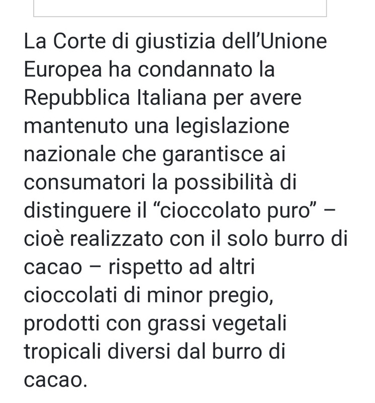 Ironmanu "hai fatto qualche verifica?" Non ne ho bisogno la legislazione italiana è molto più severa quando si tratta di alimentazione. Per quanto riguarda il cioccolato parte della mia famiglia produce cioccolato artigianale dal 1972 . |