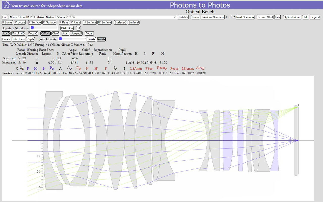 “ La lunghezza fisica c'entra come c'entra la lunghezza focale come c'entra lo schema ottico. „ La lunghezza fisica secondo me proprio no. Questi sono gli schemi e relativi percorsi ottici di due 50mm f/1.2 Nikon, il vecchio AIS ed il nuovo Z; schemi completamente diversi e lunghezza anche.