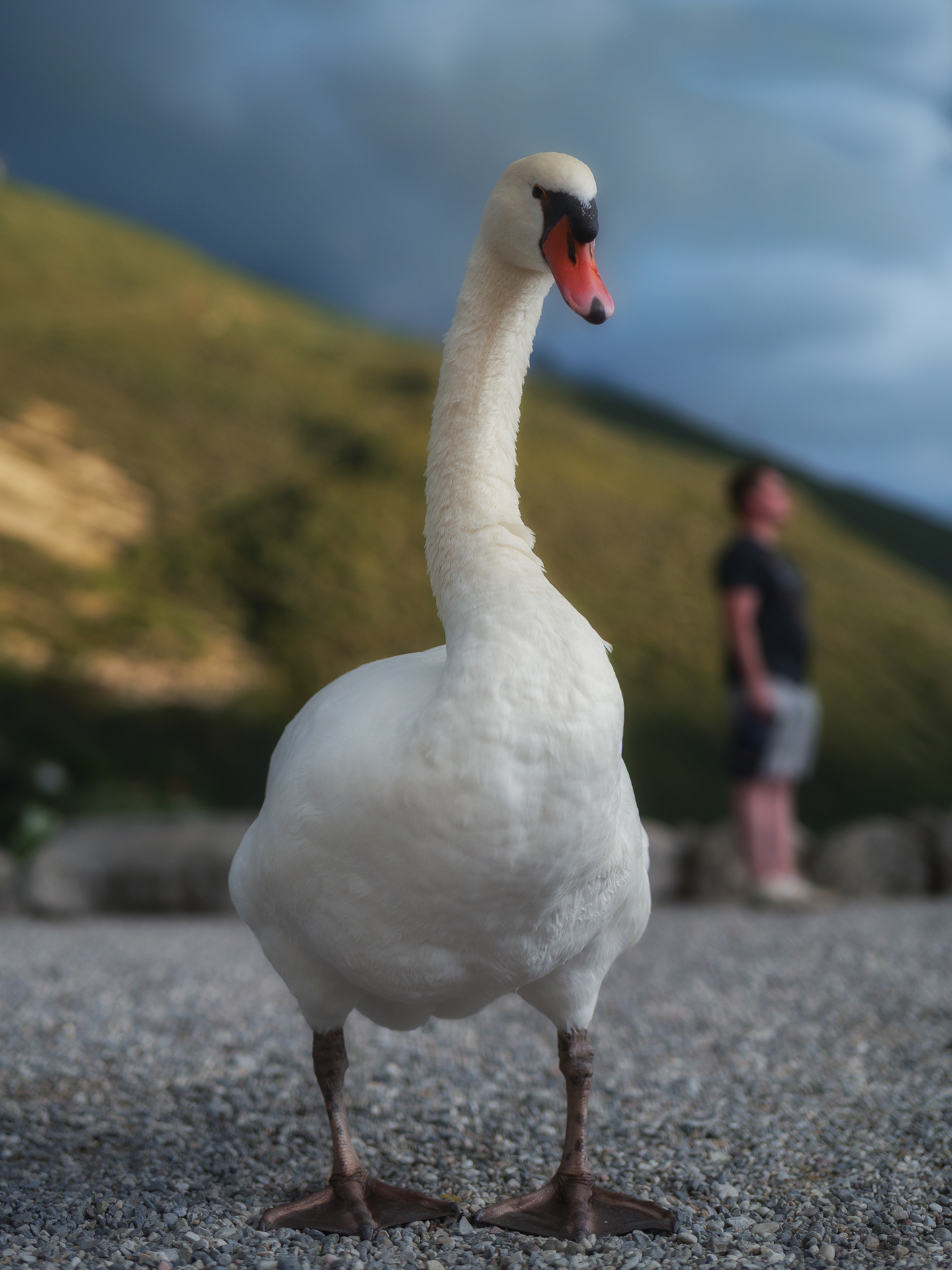 “ Secondo me l'omino va lasciato perché riequilibra la grande massa del cigno „ Anche secondo me, crea un piano intermedio fra primo piano, il pennuto, e lo sfondo, la collina, certo un piano intermedio migliore sarebbe stato più carino ma tant'è. |