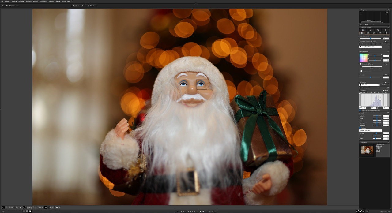 "Bisognerebbe chiedere a Vito di fare la serie di foto chiudendo di 1/3 il diaframma per volta" Eccoti accontentato La seguente serie, l'ho effettuata con l'otturatore meccanico, Full Raw e le impostazioni del profilo di fabbrica (senza aumentare in macchina nitidezza, contrasto, colori etc, tutto default). Ho eseguito un solo scatto secco per volta cambiando solo il diaframma, quindi, sono scatti singoli, uno per diaframma, non ho scelto il migliore di una serie, ma un solo scatto e basta come veniva veniva. Ho utilizzato il riconoscimento automatico dei soggetti, persone/occhi, fidandomi degli automatismi della macchina/obbiettivo, il punto AF l'ho bloccato per tutti sull'occhio alla vostra sinistra (destra per babbo natale). Le immagini sono così come uscite dalla R5II, con DPP, ho solo estratto i jpeg dopo avere aperto un po' le ombre e regolato un filo di luminosità, quindi, ognuno da qui in avanti, potrà post produrre i RAW a proprio piacimento, magari applicando anche i vari mood personalizzati migliorando e rifinendo le immagini finali a piacimento. Per tutti ho utilizzato iso 100. f1.2