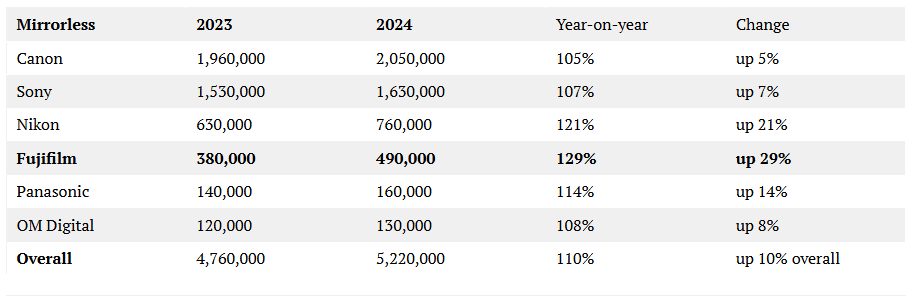 “ da dove hai preso questi numeri? riguardano solo le ML o anche le dslr e le compatte? „ C'è scritto MIRRORLESS in testa alla tabella. Fonte: amateurphotographer.com/latest/photo-news/worldwide-mirrorless-camera- comunque si trovano gli stessi dati altrove, su Fujirumors, Nikonrumors etc etc Leggendo il link inoltre, specifica bene che le unità sono solo macchine mirrorless e, per Canon, da quei numeri, mancano 800 mila DSLR. |