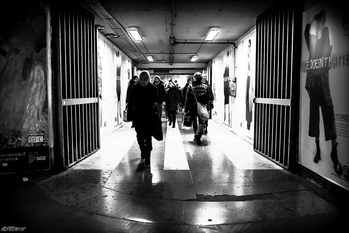 All(Controtempo):qui la luce disegna i bordi delle presenze umane,con la signora che con la borsa e il bastone e la sua andatura incerta,si nutre di luce e di bellezza...grande scatto