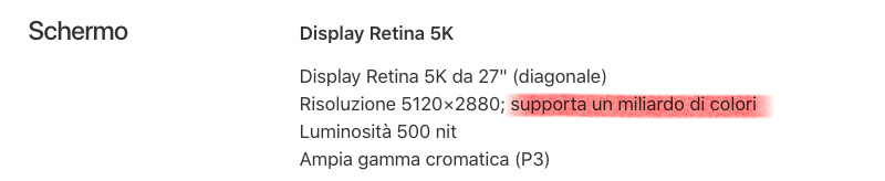 Io non leggo da nessuna parte dei 10bit www.apple.com/it/imac/ |