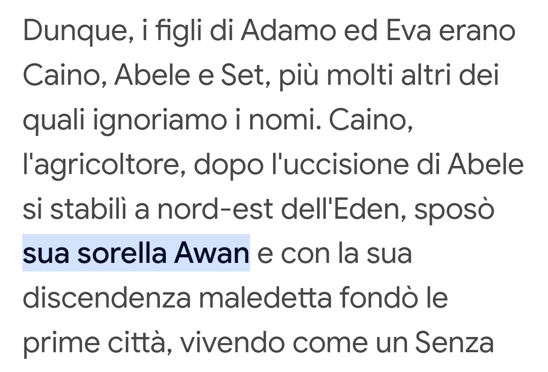 “ Caino, Abele ed il creatore, che mi dici? „ Geneticamente parlando è una fregnaccia terribile. Anche perchè l'umanità come avrebbe fatto ad esistere se gli unici due individui in grado di riprodursi erano maschi? Anche se uno dei due è sopravvissuto al massimo poteva farsi delle pippe fino alla morte ma senza l'ovulo femminile era speme sprecata. La cosa sorprendente è che l'uomo ha talmente bisogno di credere e quindi di finire nell'ambito della irrazionalità che si beve qualunque panzana. Per altro scritta da un altro uomo. Quindi vi pongo una domada: l'uomo che ha scritto questa (ed altre) panzane colossali era un pistola di tipo "A" o di tipo "B"? Lascio a voi il dibattere di epistologia. |