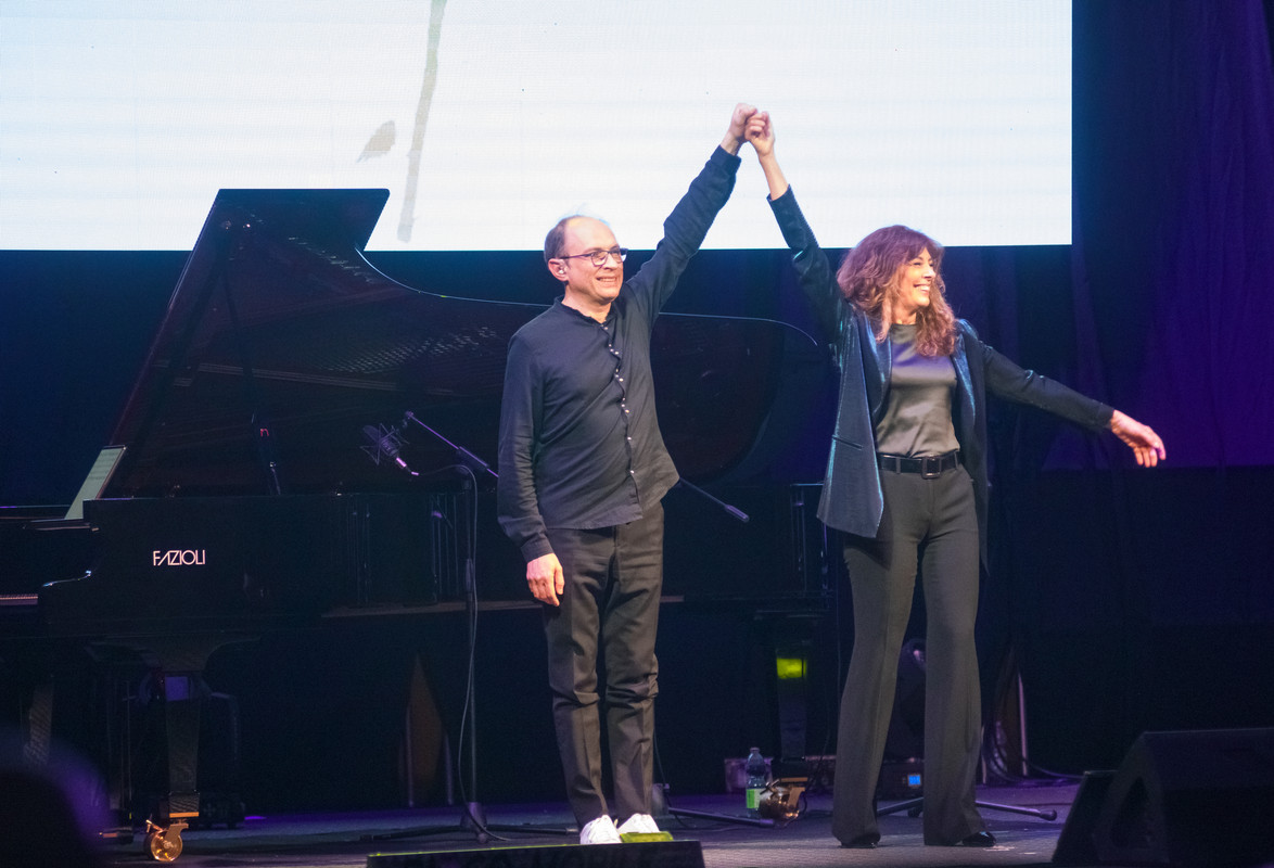 Alice nel 2021 in piazza Duomo a Monza. Serata dedicata da Elisabetta Sgarbi al ricordo di Battiato. Alice aveva 67 anni. Il piano un FAZIOLI, la voce la solita, un quasi-contralto. Sony A7R con adattato lo zoom pompone Nikkor, f/2.8 a 200 mm.