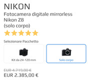 “ "la Z8 io la vedo, solo corpo, sopra ai 3300 euro import.... Nital sopra ai 4000" „ Import Asia si può acquistare anche a meno di 2400 euro.