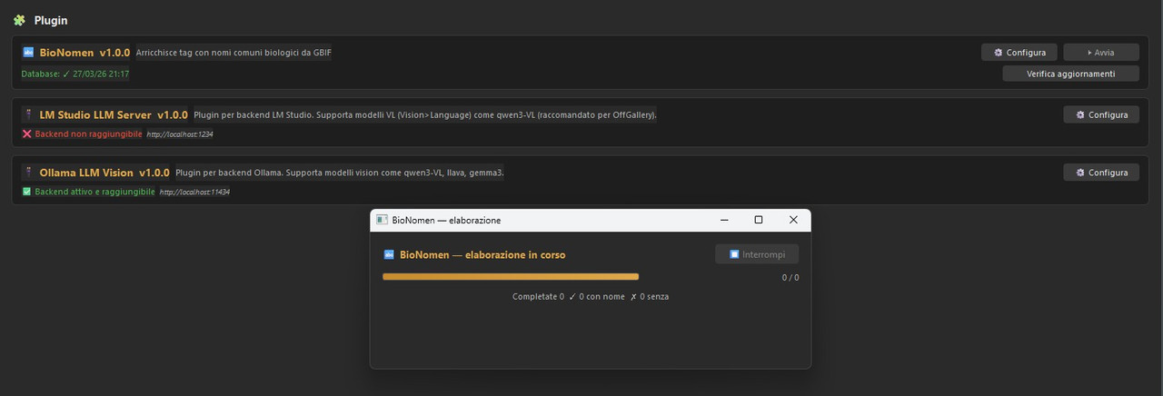 eccomi, scusate, stavo 'operando dietro le quinte' come Orchestral Manouver in the Dark Ale, grazie per la segnalazione, in effetti mancava nei requirements, come Blackbird 'The System' ha subito notato. L'ho aggiunto adesso. quindi per eventuali prossimi download dovrebbe andare tutto liscio . Tutti gli import usati sono stati adesso verificati e non manca piu' nulla. ATTENZIONE: Introdotta versione con plugin.   Le parti che mettono in collegamento il codice con gli llm di ollama /LM studio, (i plugin attuali) sono adesso pienamente 'plugghizzate' (che orrenda parola!) e ovviamente anche il resto dell'applicazione e' cambiato per caricare automaticamente quelle trovate nella directory locale /plugins. In arrivo nuovi plugin per aggiungere nuove funzionalita' attualmente non disponibili in OffGallery. Chi volesse scaricare i nuovi aggiornamenti (oltre che i plugin 'nuovi') mi mandi il suo username GitHub cosi' lo registro e potra' accedere, dopo che risponde all'email di github, ALLA NUOVA REPO PRIVATA PER BETA TESTER. La nuova versione con dei miglioramenti, ma senza plugin, continua ad essere disponibile al solito indirizzo. Rimane TUTTO uguale, tranne la generazione dei tags , titoli e le descrizioni. Dalla nuova repo potete clonare o updatare come fate adesso. grazie |