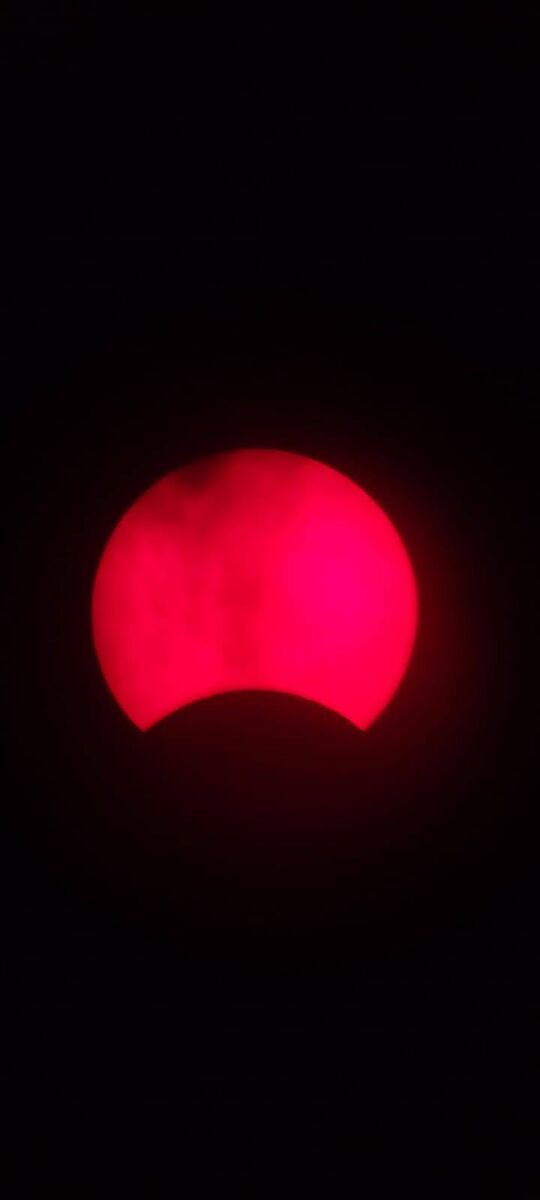 Si può fotografare il sole con una fettina nascosta, ma in visuale, senza strumenti appositi non si noterà praticamente nulla
