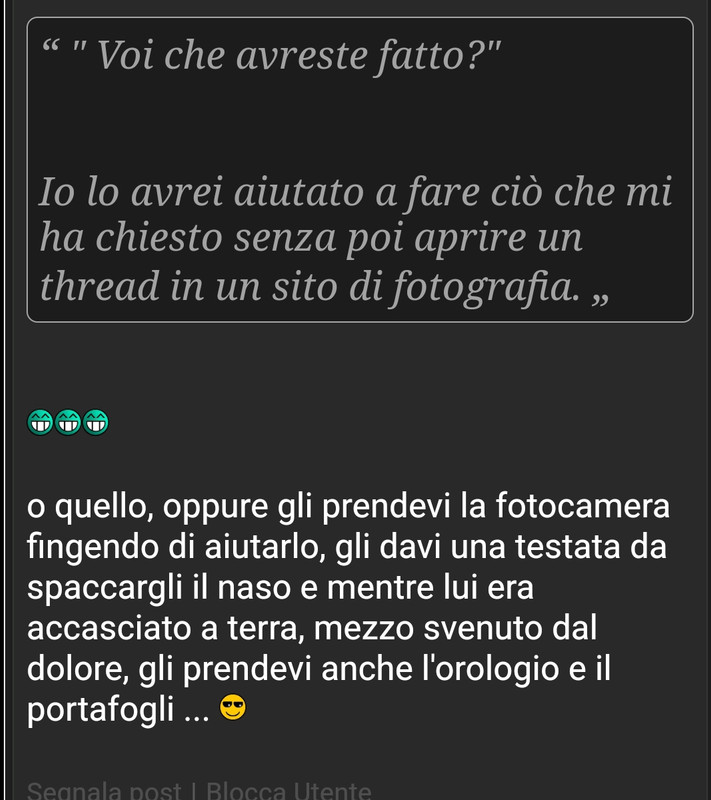 Non escludo nulla anche se ho difficoltà quasi insormontabili a passare dal lato oscuro della forza Allo stesso tempo non si può relegare solo a pura speculazione la ricerca dell'essere spirituale immateriale come una resa. Buona notte.