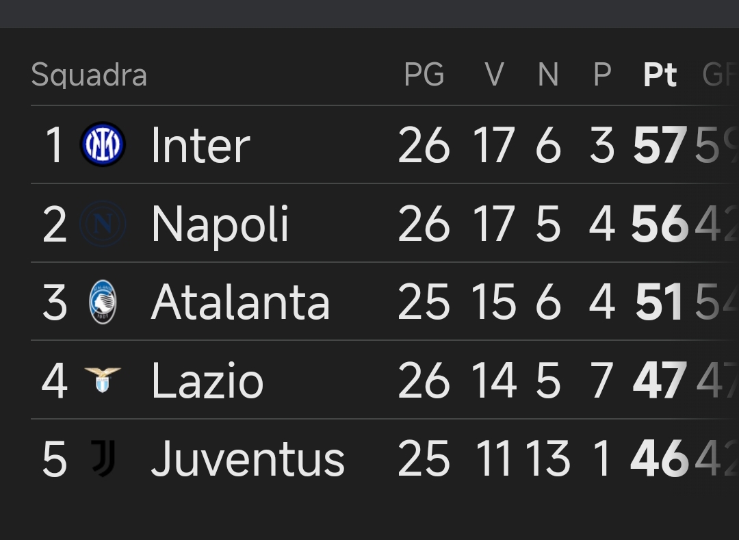 Mi piace Napoli dopo Inter e Bologna c'è la squadra del Napoli.